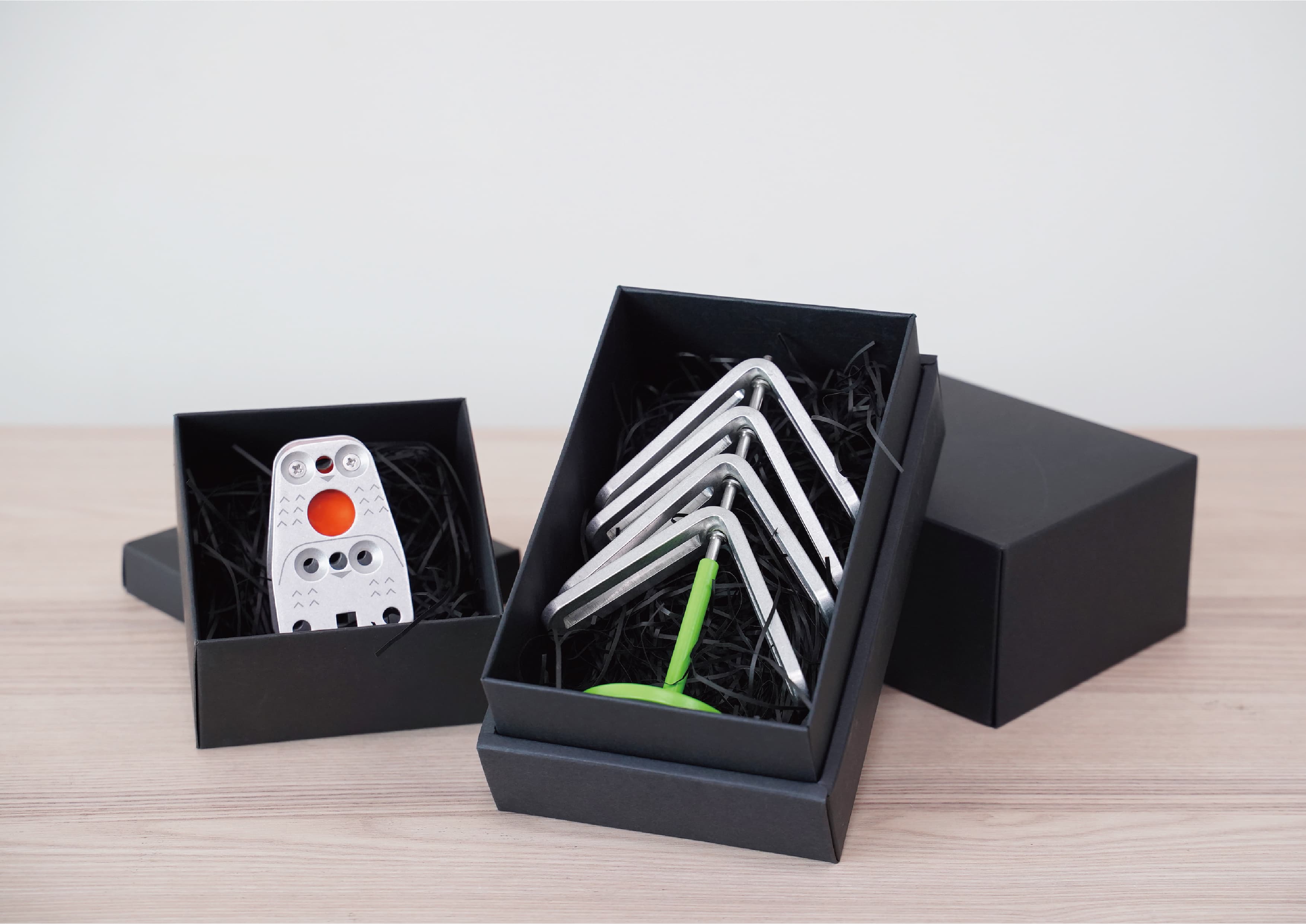 ① 貓頭鷹響板→由板金餘料外觀發想,雷雕簡單線條,營造母子貓頭鷹的意象。